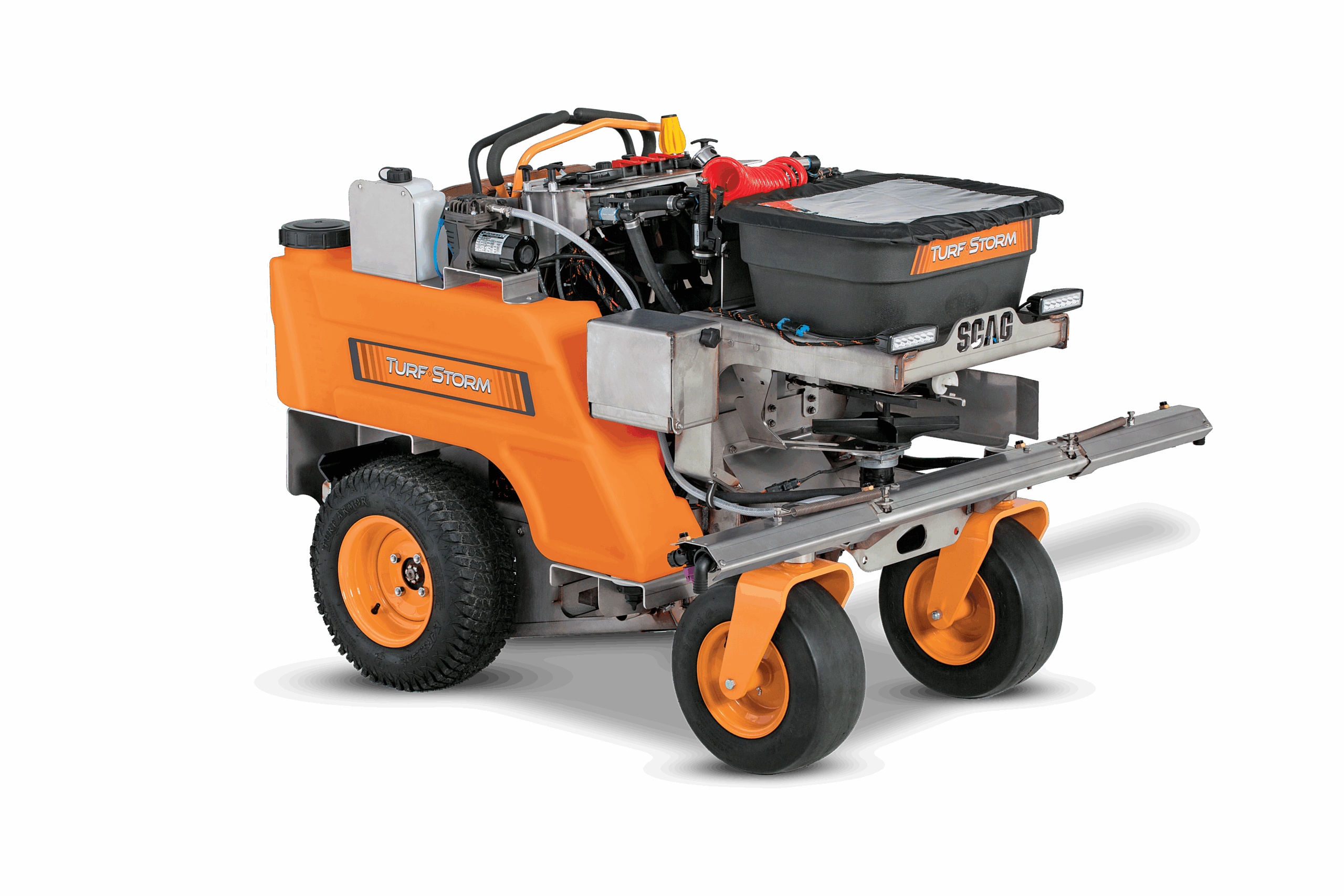 Looking to expand your lawn care offers? The Turf Storm XL and Turf Storm are ready to help you handle any job. With a 220-lb spreader capacity, 60-gallon sprayer capacity and an 8-ft spray boom, the Turf Storm XL can handle even the largest jobs. Conversely, the Turf Storm, with its 120-lb spreader capacity and 30-gallon sprayer capacity, is ideal for working on smaller residential properties. And, its 35.5-inch width (65-inch boom folded in) lets it fit through any standard gate. A 75-foot hose reel (Turf Storm XL) or 15-foot hose reel (Turf Storm) allows you to reach tough spaces.