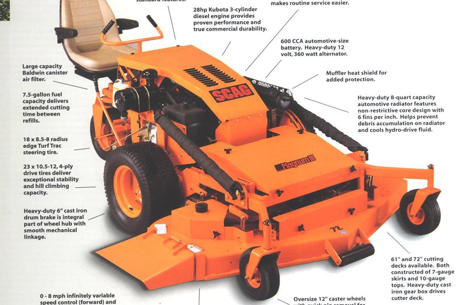 Since 1983, Scag Power Equipment has been producing heavy-duty, commercial and residential mowers, debris/turf management and compact construction equipment. This gives us the experience needed to know what really works, and what doesn’t. We also have the experience to know that we don’t know everything… We listen to our customers and constantly make the changes needed to meet their needs. In fact, every Scag mower receives many improvements and enhancements on a constant basis. Even the smallest improvements are important in creating the “Simply the Best” machines on the market. This constant product evolution has enabled us to retain our reputation as the premiere outdoor power equipment line in the industry. You can find machines that cost less; however, you get what you pay for.