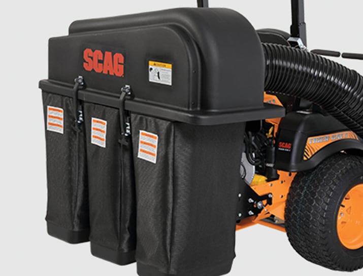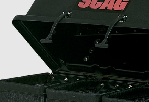 What does this mean to you? Shredding the debris allows you to pack from 50% to over 100% more into the same amount of space when compared to other grass catchers on the market. Simply put, you will be able to bag more debris before you have to stop and empty the bags. That saves time and greatly increases productivity. See your Scag® Dealer today to get your hands on this incredible catcher system.
